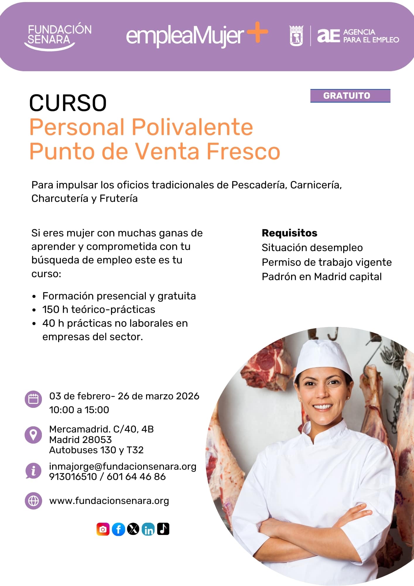 OFERTA FORMATIVA DE MERCAMADRID Disponemos de una amplia oferta formativa enfocada a sectores con gran empleabilidad como producto fresco, carnicería, pescadería, frutería, comercio y logística. Impartidos en Mercamadrid Descarga aquí nuestro díptico de formación Descarga aquí nuestro catálogo de formación Descarga aquí las fichas completas de nuestros cursos Consulta nuestro calendario de cursos gratuitos Consulta […]